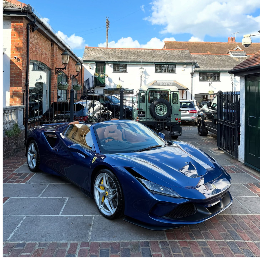 2022 Ferrari F8 Spider, Blu Tour de France with Beige interior, 3,921 miles, full PPF, warranty, £249,850.